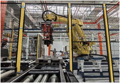 裝配線的物料上、下線由立體倉庫AGV自動配送至產(chǎn)線的物流線進(jìn)行自動對接,采用了18套機器人以及視覺自動識別定位、防錯進(jìn)行物料抓取裝配,實現(xiàn)自動上料、信息掃碼裝配及檢測;裝配過程數(shù)據(jù)采集、物料條碼信息、設(shè)備過程控制等采用中控系統(tǒng)進(jìn)行中央控制,并與工廠MES系統(tǒng)、物料信息系統(tǒng)聯(lián)網(wǎng)控制,實現(xiàn)智能化工廠。